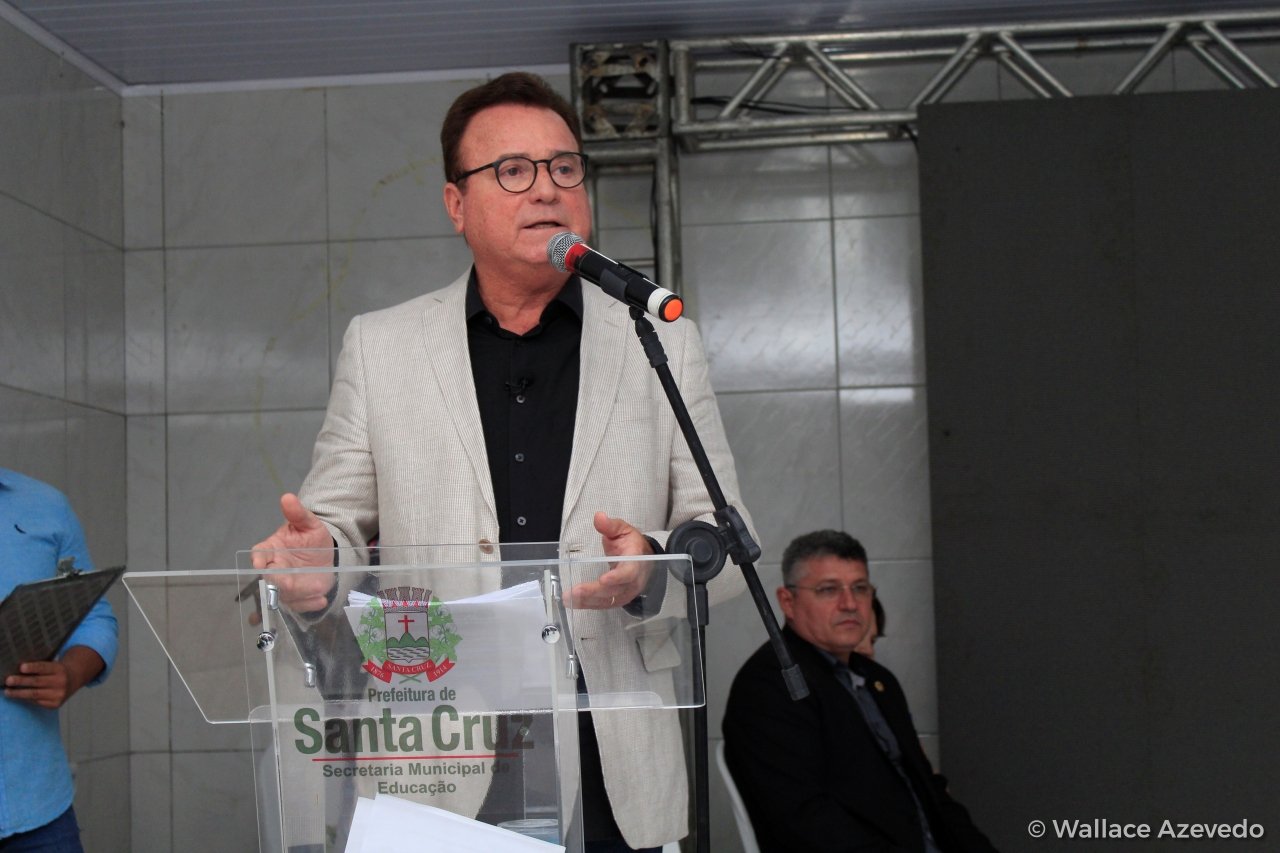 Ainda em seu discurso, Tomba Farias (PSDB) lembrou que a Prefeitura de Santa Cruz cumpre rigorosamente o Piso Nacional do Magistério, o que não acontece no Governo do Estado, pela governadora Fátima Bezerra.